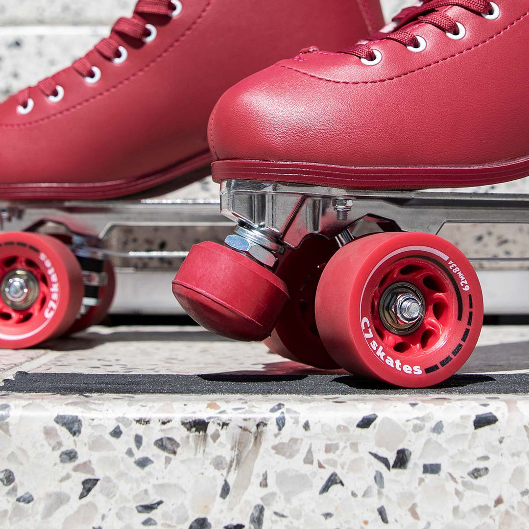 The retro boot is durable and sleek, made with plush interior fabric for the highest comfort! Made with vegan leather and standard PVC to provide sturdy ankle support as you skate. Functional and absolutely mesmerizing!