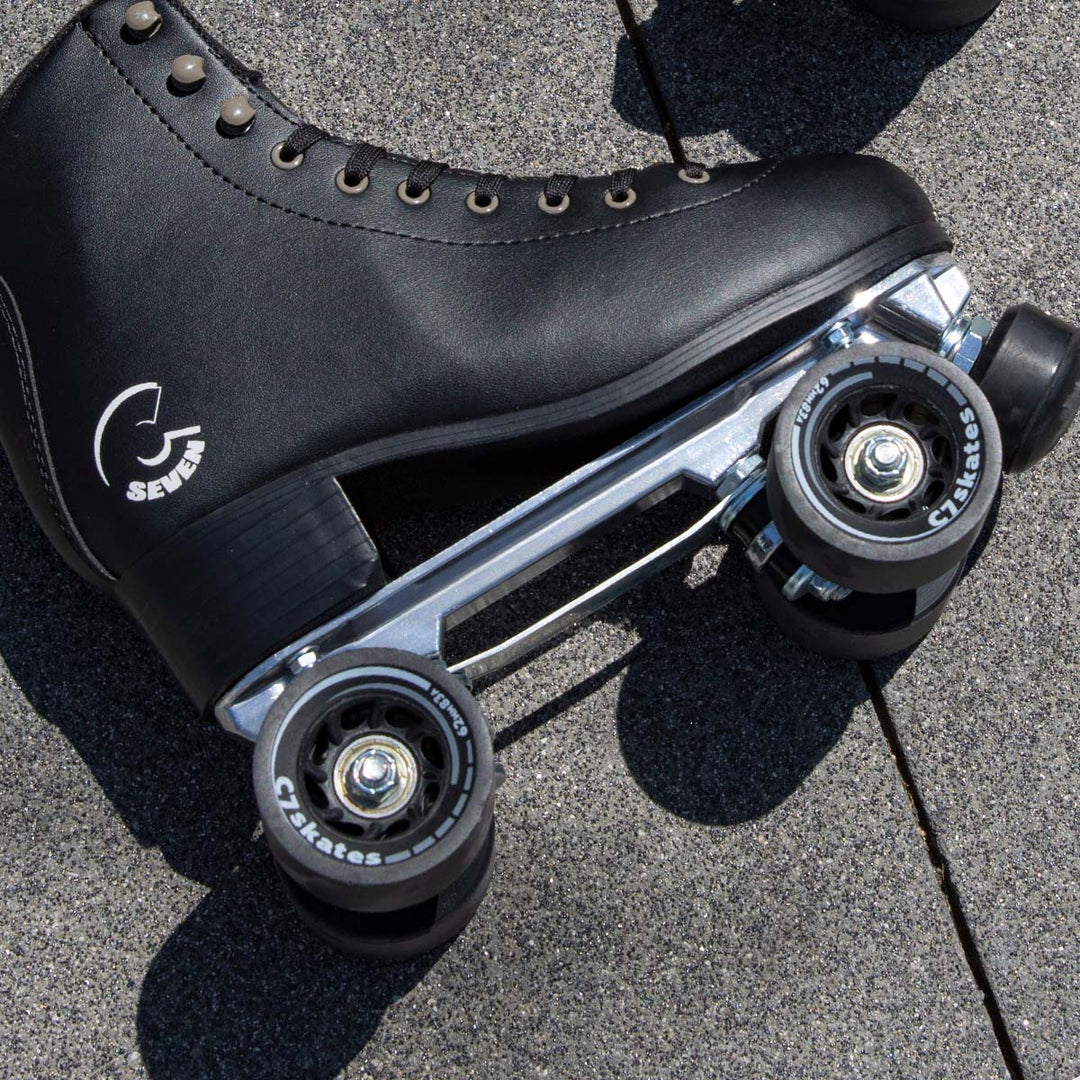 The retro boot is durable and sleek, made with plush interior fabric for the highest comfort! Made with vegan leather and standard PVC to provide sturdy ankle support as you skate. Functional and absolutely mesmerizing!